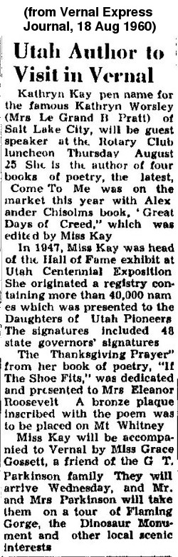 Utah Author to Visit in Vernal (1960)