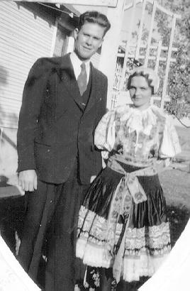 The Newly weds, Calvin and Frances McOmber. After Calvin's mission, he wrote a letter of proposal (after waiting six months as was mission rules) and brought dear Frances Brodilova to Pocatello, Idaho. They were married April 30st, 1937 in the Salt Lake Temple. This is Frances in her native Czech costume. The native Czech costume to a new bride was more important than a wedding dress. In olden times, the brides were married in their native costumes. Frances may have borrowed her wedding dress. Apostle John A Widtsoe married them and gave them a wedding breakfast in his home in Salt Lake City.