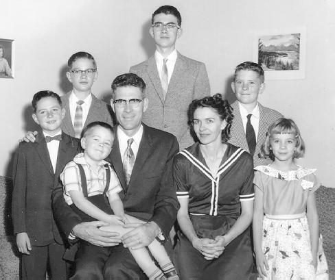 Back: L-R: Earl, Logan, Douglas, and Gail Front: L-R: Kent on the lap of Adrian, Grace, and Carol