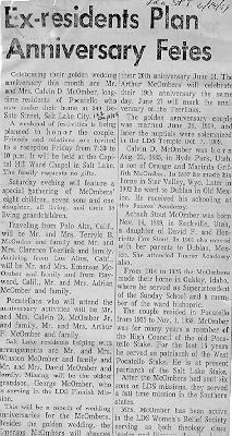 Idaho State Journal article of the 50th wedding anniversary party of Achsah & Calvin.