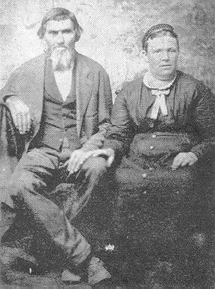 Allen Joseph and Amanda Fisk Stout in the 1880's. Grandparents to Achsah, They were married by Brigham Young at Winter Quarters and crossed the plains to Utah. They lived mostly in St. George and Rockville, Utah. This is a wonderful picture that was saved by Wayne Stout. Allen was born December 5, 1815 in Kentucky and Amanda was born at Silver Creek, Chautauqua Co. New York, June 12, 1832. We guess that this picture was taken about 50 years later. Aunt Daisie has said that David McOmber has the greatest resemblance to Allen in his youthful days.